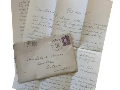 A handwritten letter and envelope, 1913. Aurora Museum & Archives (2009.06)